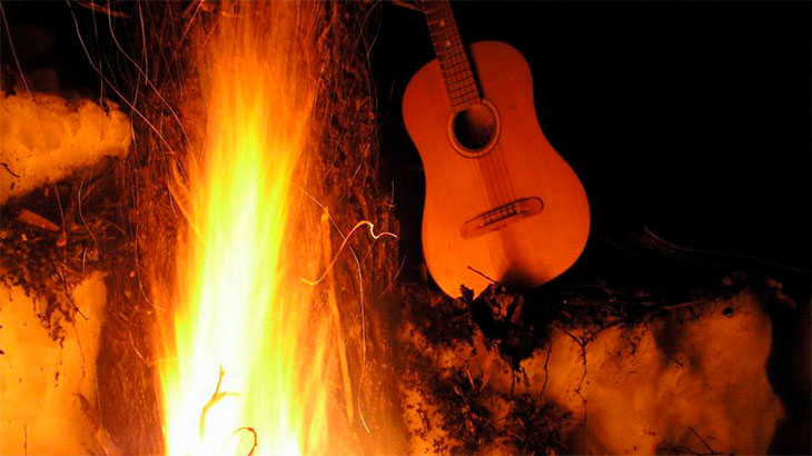 а вечерами мы собирались у кого-нибудь в саду жгли костер, пекли картошку и играли на гитаре.