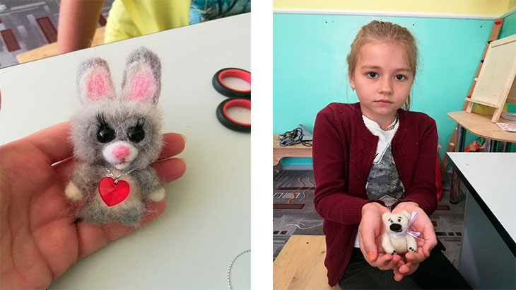 Художественную студию и шерстяную мастерскую ведет известный в городе мастер Елена Петрова. Елена профессиональный художник и педагог, в том числе и с детьми с ОВЗ. В студиях смогут заниматься не только дети, но и взрослые. Здесь они рисуют не только на бумаге, но и не стекле, керамике, дереве, тканях. В шерстяной обучаются способам валяния (сухой и мокрый), а так же выкладке картин. Детям интересно все. Они схватывают вес на лету. Главное, что бы им было интересно.
