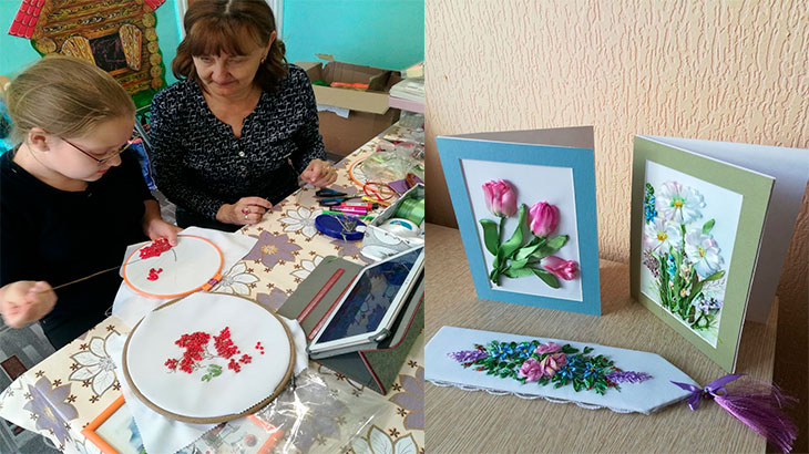 В основном все преподаватели пришли на работу по приглашению Людмилы. Но есть одна замечательная женщина, Татьяна Ивановна, которая сама пришла в центр и предложила вести кружок по вышивке лентами. Татьяна Ивановна педагог со стажем, сейчас она на пенсии, ее хобби вышивка. Она очень теплый и светлый человек, которая решила передать свои знания и умения следующему поколению. У нее свой подход к каждому ребенку.