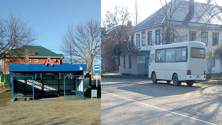 В поселок три раза в день ходит рейсовый автобус. Здесь две остановки. Первая расположена на рынке, на центральной площади. Отсюда автобус уходит утром в 6:00 часов, второй рейс совершается в 12:00 дня с остановки расположенной рядом с гостиницей и третий рейс в 15:00 с остановки расположенной на рынке. Маршрут автобуса с. Ачуево- Славянск-на-Кубани.